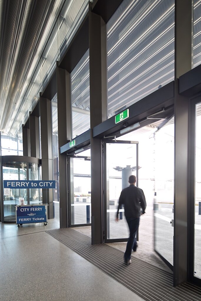 Products from record Automatic Doors were used exclusively throughout the terminal, including 2 x Fullview revolving doors, 11 x STA 20 automatic sliding doors and a total of 18 x DFA 127 automatic swing doors, which included 8 to the main entry.