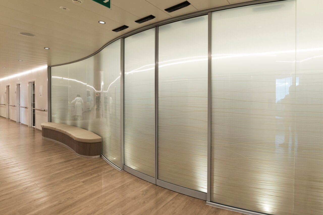 Die gebogene Schiebetüre recordCURVED gibt dem Eingangsbereich zur Klinik einen edlen Touch ohne dabei auf Einfachheit und Zuverlässigkeit zu verzichten. Die geschwungene Form der Glaswand, sowie der automatischen Schiebetüre, kombiniert mit den speziellen Verbundsicherheitsgläsern, lassen den Eingang der Klinik beruhigend und einladend wirken.