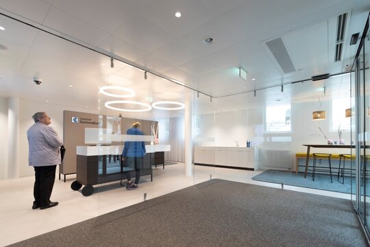 Im Zuge der Modernisierung der Geschäftsstellen, wurde in Sempach (LU) die erste Filiale nach neuem Konzept umgebaut. Ausserhalb der Geschäftszeiten ermöglicht die grosse 24 Stundenzone den Kunden der LUKB zu jeder Zeit Geld einzuzahlen und abzuheben. Der Eingang in das Altstadtgebäude, welches dabei durch eine record THERMCORD Schiebetüre einladend gestaltet wird. Die 24 Stunden Zone ist durch eine automatische Schiebetüre record STA 20 in Verbindung mit einer automatischen Schiebewand vom eigentlichen Beratungsraum getrennt. Der Kunde hat so zu jeder Zeit einen Einblick in die schönen und modern gestalteten Räumlichkeiten der LUKB. Die an die Schiebewand angrenzende Schiebetüre record STA 20 ermöglicht es den Angestellten auch ausserhalb der Öffnungszeiten Kunden in die Bank einzuladen und dabei die Banksicherheit durch eine Verschleusung der Aussentüre mit der Innentüre sicher zu gestalten.