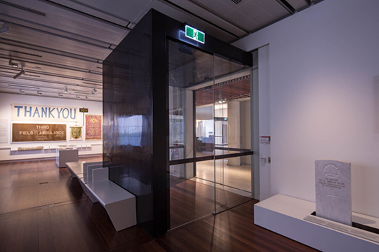 To the side of the Hall of Service is the Centenary Exhibition gallery, illustrating the evolution of Australian military service, with a focus on the personal stories of NSW service. To the entrance foyer of this space record installed four STA 20 single sliding automatic doors within two airlocks designed to minimise sound transmission between these areas.