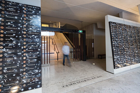 At the centre of these extension works is the Hall of Service, a civic space that architecturally and artistically mirrors the Hall of Silence, while recognising more than a century of service by Australian servicemen and servicewoman. It functions as a greeting and orientation space for the public, including tour groups and school children; and as a venue for ceremonies and functions, flowing onto exhibition galleries and education facilities.