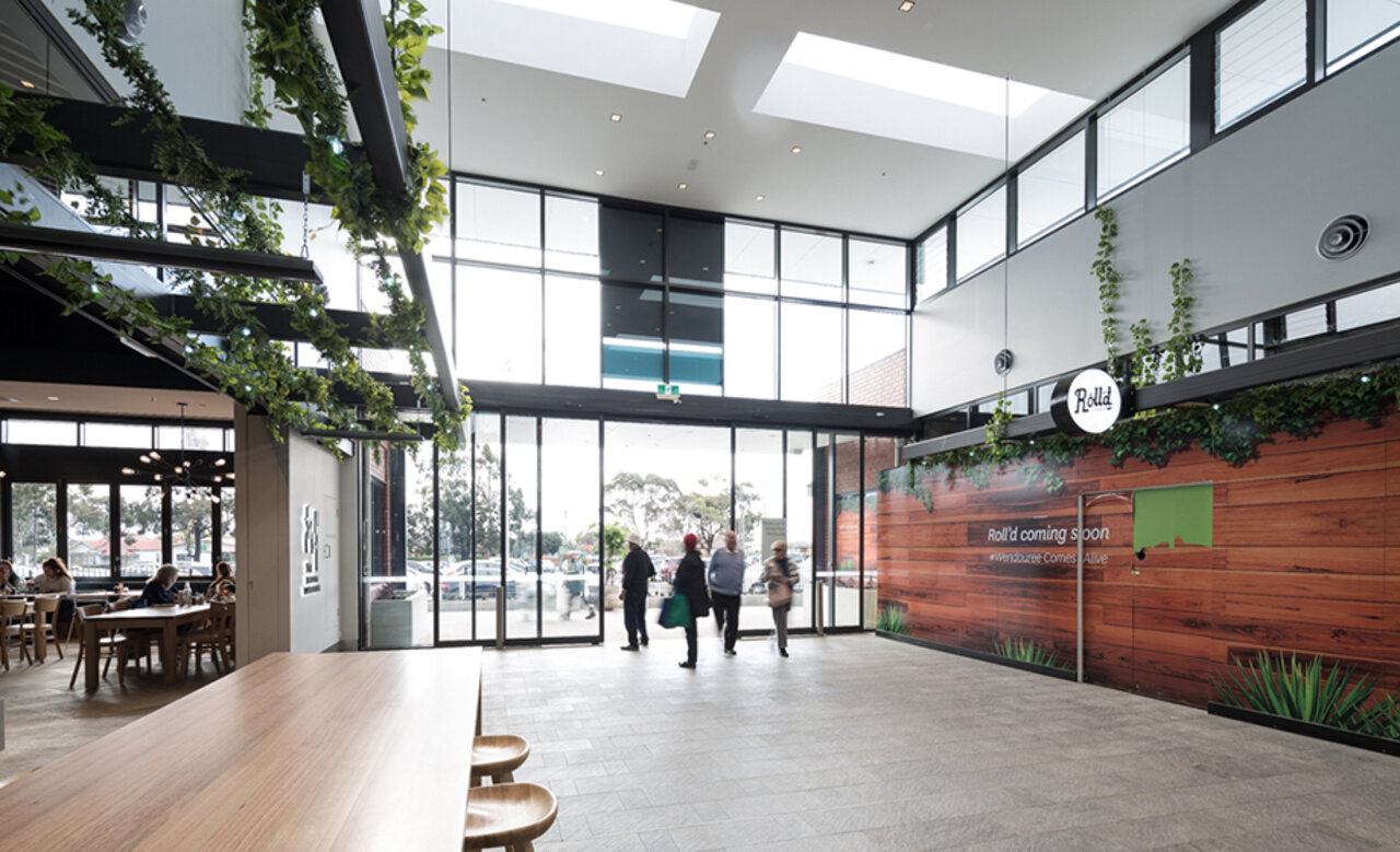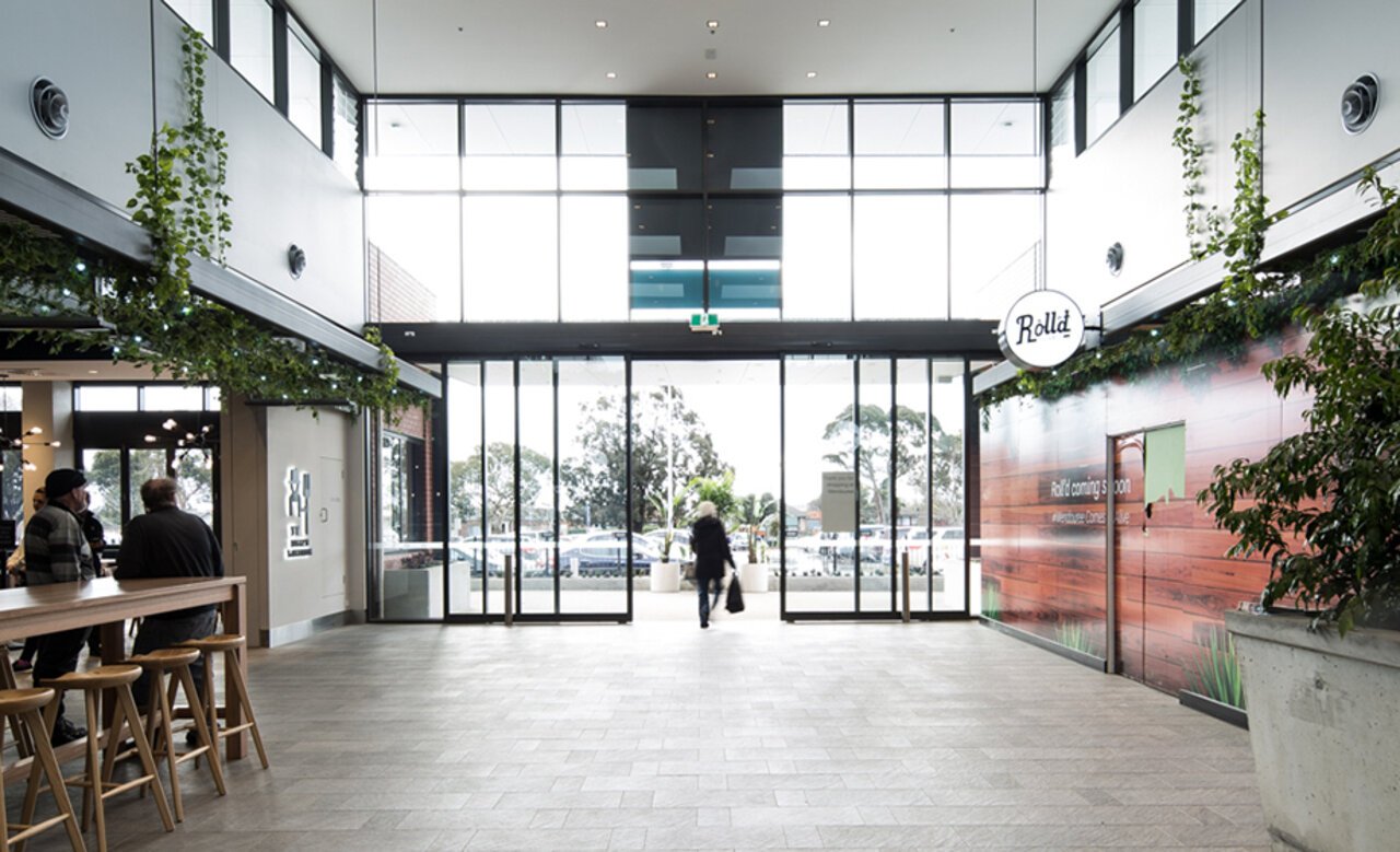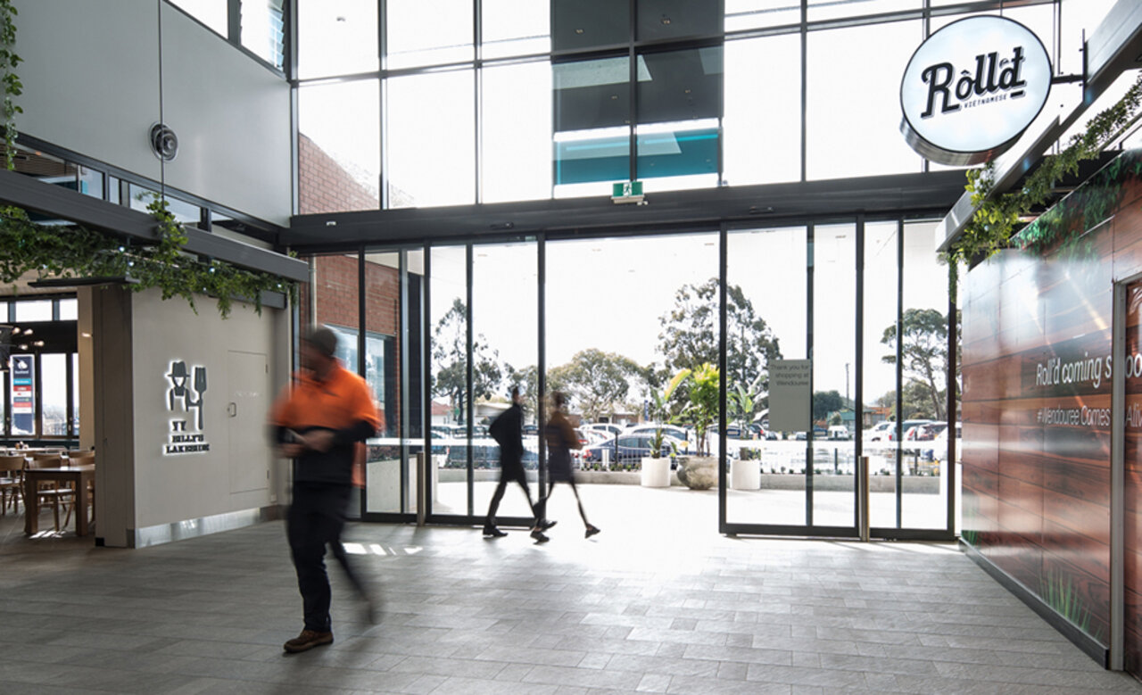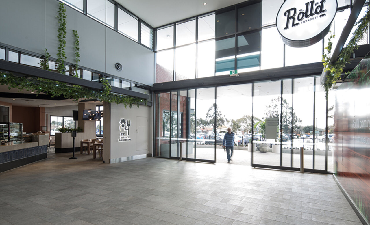 For the main entrance of the $37 million redevelopment of the Stockland Wendouree Shopping Centre, the in house design team at Stockland were keen for a large automatic sliding door entrance to maximise the clear opening space leading into the centre’s casual dining precinct.