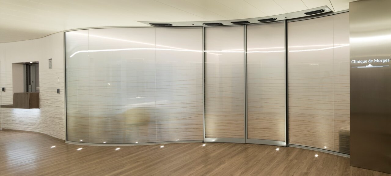 Die gebogene Schiebetüre recordCURVED gibt dem Eingangsbereich zur Klinik einen edlen Touch ohne dabei auf Einfachheit und Zuverlässigkeit zu verzichten. Die geschwungene Form der Glaswand, sowie der automatischen Schiebetüre, kombiniert mit den speziellen Verbundsicherheitsgläsern, lassen den Eingang der Klinik beruhigend und einladend wirken.