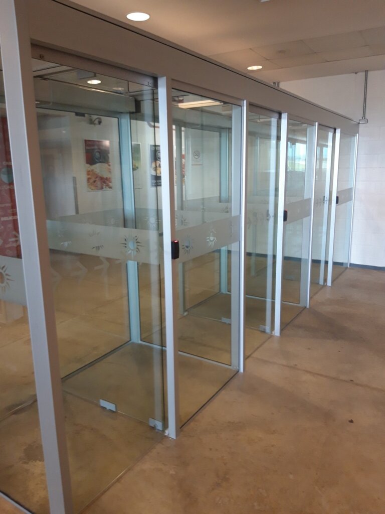 record E STA (1 leaf) sliding door in interlock mode in full glass version with tempered safety glass