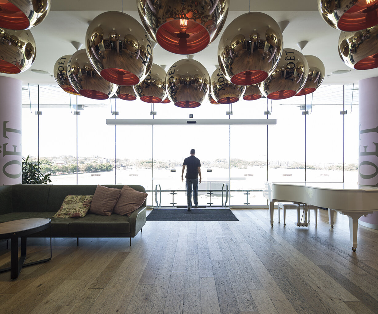With the existing automatic swing doors to the outdoor terrace of the Moet & Chandon Room, on Level 4 of Royal Randwick Racecourse, unable to operate with the high wind loads of such an exposed location, record Automatic Doors was engaged to provide an alternative solution.