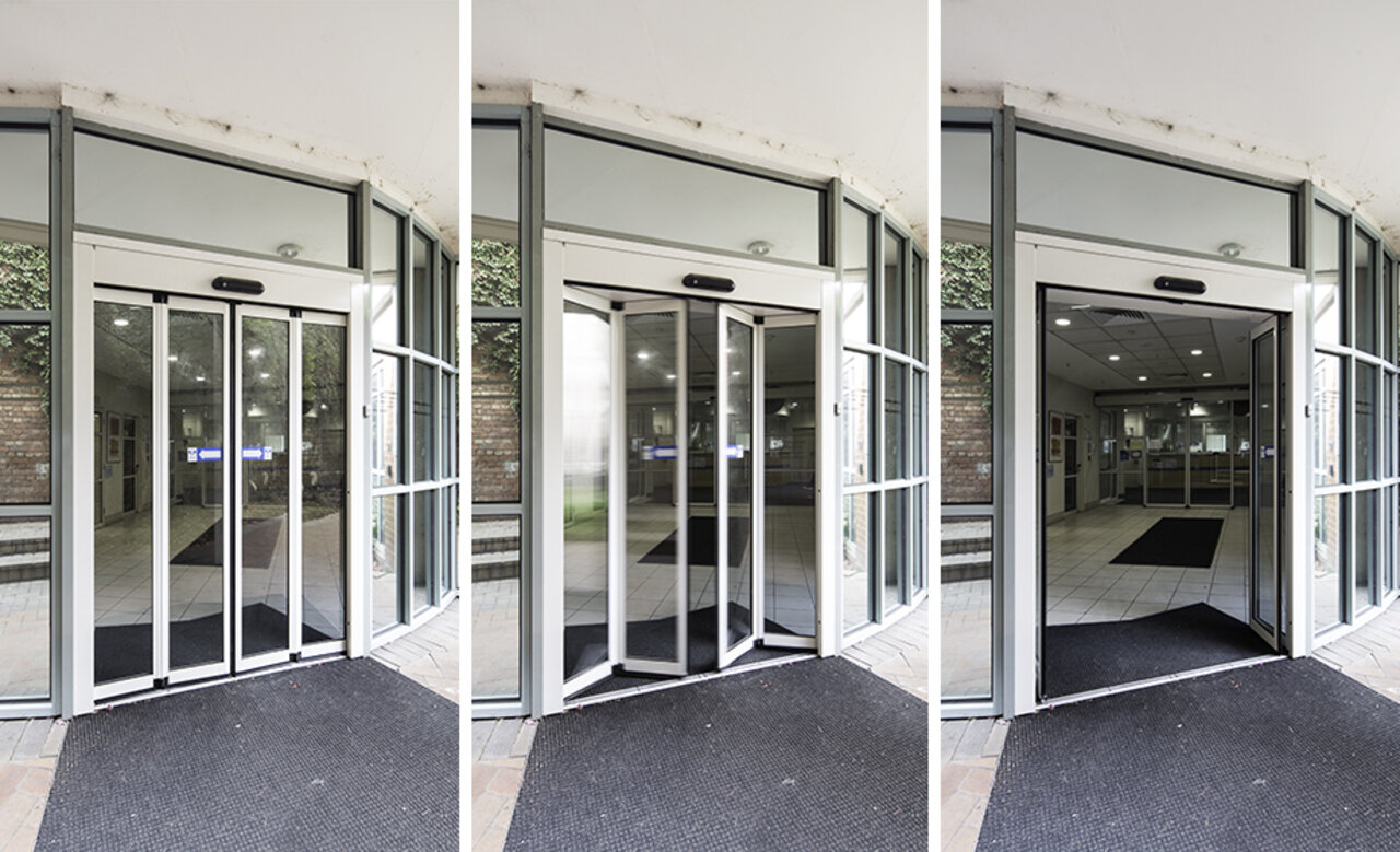 Perfect for narrow passageways, the record FTA 20 offers fast opening and closing of automatic bi-folding doors within the entrance opening, an advantage over conventional sliding and swing door entries that need adjacent space to operate.