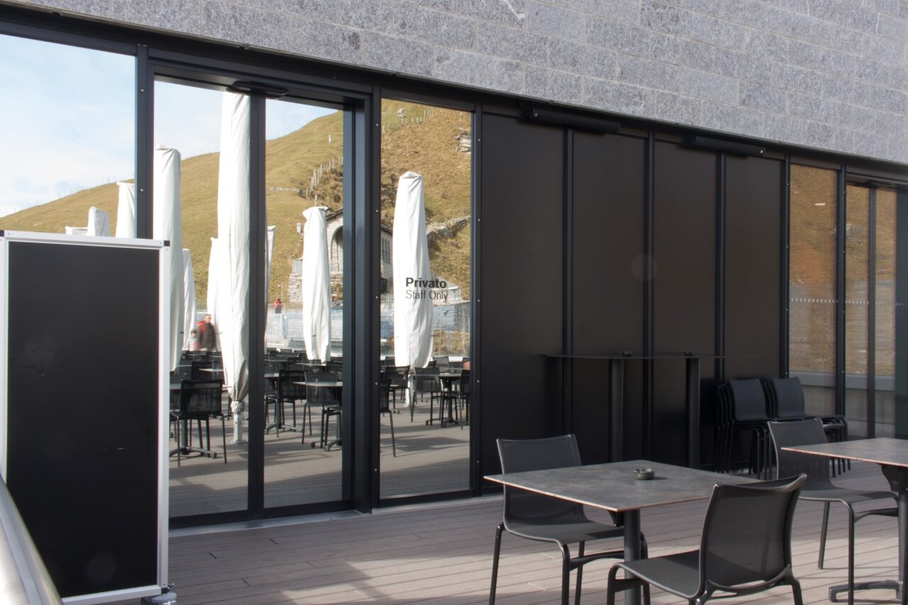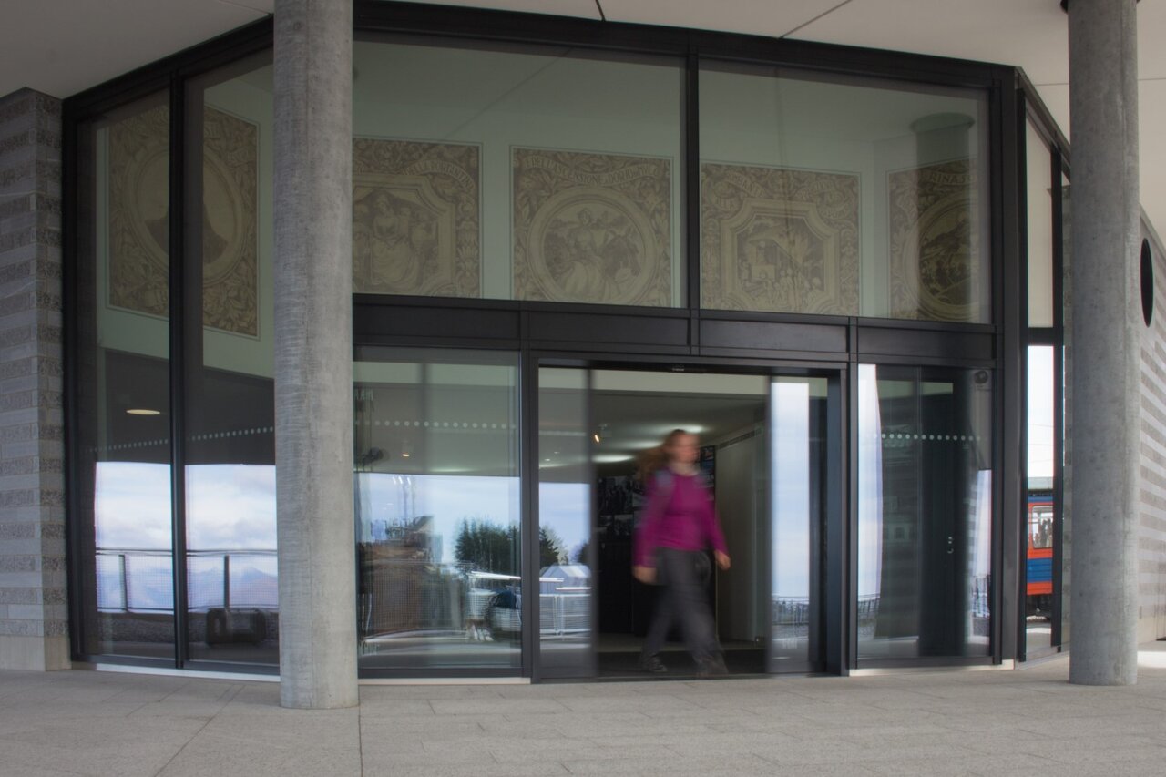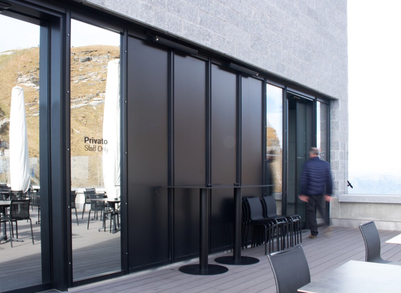 Genau in einem solchen Gebäude fanden auch die thermisch getrennten Schiebetüren record THERMCORD ihr Anwendungsgebiet. Durch die thermisch getrennten Profile, gepaart mit der filigranen Bauweise, konnten die architektonischen Herausforderungen mit den Anforderungen an die Gebäudehülle vereint werden. Die Firma Galvolux verbaute die Türen auf 1704müM, dabei wurde dem Druckausgleich der Gläser besonders Beachtung geschenkt, da die klimatischen Bedingungen auf einer solchen Höhe nicht die gleichen sind wie unten im Tal.